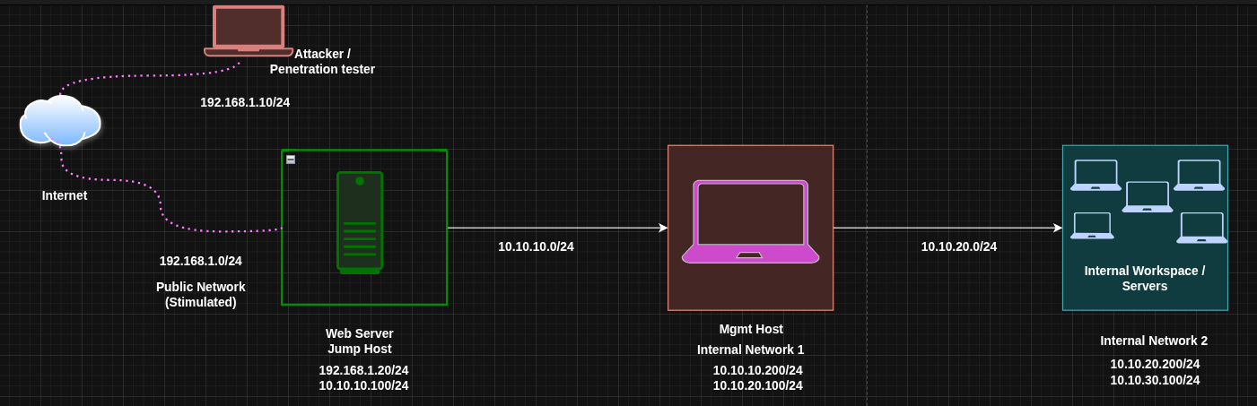 | Pivot Host | 192.168.1.20 | 10.10.10.100 | 80 (outbound) | Jump Host |