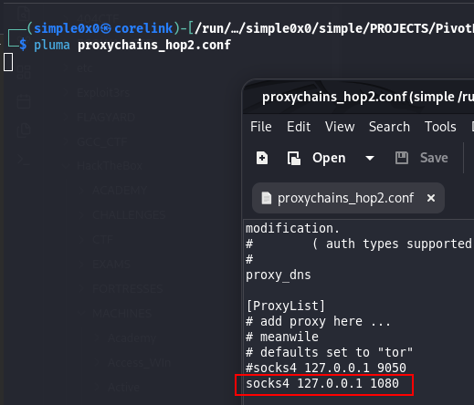 With the SOCKS4 proxy active, any proxychains-prefixed command is routed through the pivot host's network.