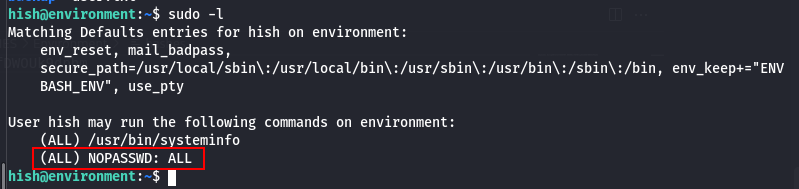 hish@environment:/dev/shm$ sudo -i root@environment:~# ls root.txt scripts root@environment:~# cat root.txt cd64a8455b6b67925a1bfa1644db44a7 root@environment:~#