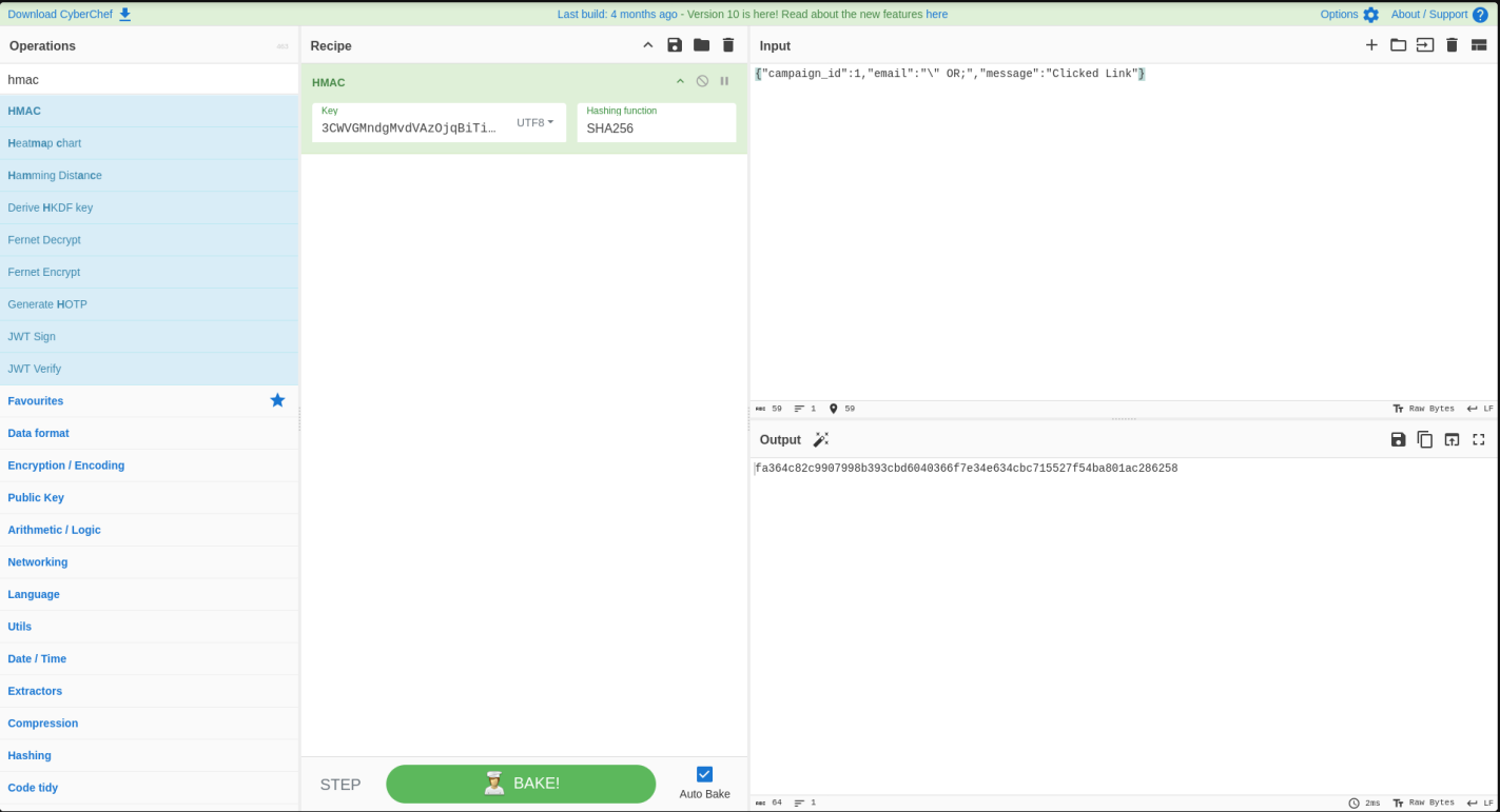 The reason for this is because the signature needs to be computed against the payload currently being used. To do this we will use CyberChef .