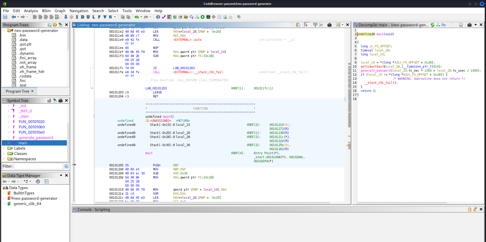 main()did in the originalneo-password-generatorbinary:seed = tv_sec * 1000 + tv_usec / 1000; - Since we only know